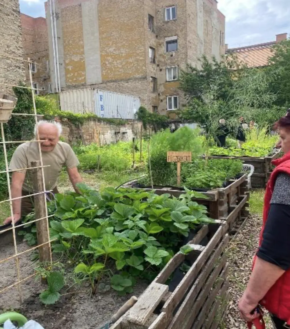 A több magaságyásból álló kertet a környék lakói közösen tartják fenn, és működését részletesen be is mutatták nekünk. A nap végén a Kalamajka étteremben közösen pizzáztunk egyet, és átbeszéltük a rengeteg élményt.