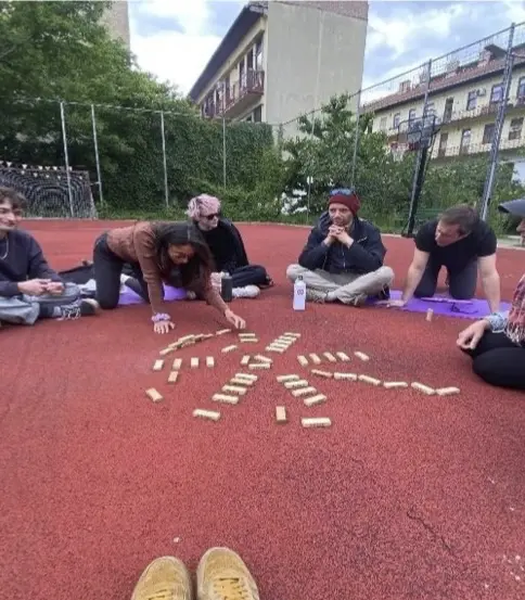 Délután trolival a Józsefvárosban található Dankó udvarba látogattunk, amely egy csodás, sokszínű és aktív közösségi térként működik. Itt valóban arra használhattuk a teret, amire az készült: beszélgettünk, heverésztünk a színes zsákszékeken, de roma tánclépéseket is elsajátíthattunk, majd a sportpályán egy nagyot tollasoztunk a kerületi gyerekekkel, s még az agyagkészítésbe is apró bepillantást nyertünk.
